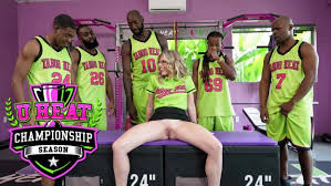 Will Tile is in the gym, lifting weights when he feels like he pulled a muscle in his neck. ‘You must be the starting point guard?’ Melanie Hicks says, as she walks into the gym. Melanie is a new trainer for the Taboo Heat basketball team and she is here to help Will with the pinch in his neck. She starts to rub his neck, and then she confesses that she’s helped out some of the other team players in another way. She takes her hand and she runs it along the outline of his cock, to show him what she is talking about. Melanie gets down on her knees in front of Will and she pulls his shorts down to the ground. She takes his BBC and she puts it in her mouth. Since he has such a huge cock, she uses her hands and her mouth simultaneously. He then lifts her top up, and he notices her pink bra under her shirt. ‘What size are those?’ he questions her. ‘Double D’s!’ she exclaims. He pulls her big tits out from under her bra, and then he pulls her shorts off. She bends down and she sucks his cock again. Melanie then moves into the doggystyle position, leaning against one of the weight benches. He slowly starts to fuck her pussy from behind, with her pink g-string pulled to the side. A few minutes later, she flips over onto her back and he continues to fuck her pussy in the missionary position. He lifts her up in the air and he continues to pound her pussy. Then he lies her back down on the bench, and he fucks her pussy while she’s lying down on her side. Melanie moves into the cowgirl position next and she bounces up and down on his cock. She then moves into the reverse cowgirl position and he fucks her pussy hard even though she’s the one whose on top. She climbs off of him and she sucks his cock clean, before she moves into the doggystyle position. He fucks her pussy from behind while she rubs her clit. He continues to fuck her pussy from behind, until he is ready to cum. Then, he jerks his cock off into her mouth and she swallows it all! ‘How’s that shoulder bruise feeling now?’ she asks him. ‘Much better now!’ he cheerfully exclaims.